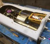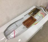 Лодка с ДВС для меня первая, были только электрички. Построил под руководством Вячеслава Авинова. Вот мы на днях задались одним вопросом: из чего сделать топливный бак. На данный момент временно стоит бак найденный где-то у нас моделке и лет ему больше чем мне.) Спаян из нержавейки оловянным припоем, объём 1100 см2. Не устраивает тем, что стоит посередине, а надо сдвинуть на левый борт для лучшей балансировки, высокого центра тяжести, большой вес, форма, ну и вид не очень. Вот и задумал изготовление нового. Хотел из нержавейки 0.4 мм, порезать бластером, погнуть на станке, и спаять. Потом посетила идея по поводу стеклопластика. Плюсов много: легкость, практически любая форма, технология изготовления(с стеклопластиком больше дружу, чем с горелкой), бензин не дружит с смолой и др. Но потом появился вопрос по поводу статического электричества. Стеклопластик диэлектрик, бензин во время движения бултыхается, появляется статика. В какой то момент искра(особенно хорошо будет когда бензина мало останется, и в баке будут одни пары) и бабах! С другой стороны в лодке внутри всегда присутствует немного воды, она как проводник заземляет бак!?