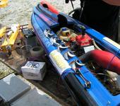 • Транец. Безупречно. Ввиду аккуратной сборки не ослабли гайки. Ничто не выкрутилось, едва заметен износ защитного слоя под радиобоксом. Если учесть что бензомотор вибрирует и все это стоит на единых рельсах - то супер.