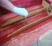 Если при пропитке ЗАРАНЕЕ вырезанные, но еще не вклееные рельсы прогревать строительным феном - то просто класс будет! Смола становится такая активная, что только пол застелай. Будьте осторожны.