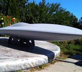 карбон-кевлар изнутри,сендвич в дне,транец и кольцо трюма вклеены между слоями ткани, ваккум,стабилизация…93 см, 1300 гр, швы заделаны,грунт под покраску…