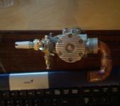 О другое дело так с фото понятно что к чему, ну во первых, а есть возможность не заморачиватся с авиамодельной 10кой, может стоит поискать судомодельный вариант, ниже у человека на фото, аргументирую почему, ну во первых ты здорово себе упростишь жизнь, на нем есть уже, переходник на дейдвуд, маховик, рубашка охлаждения и большой плюс выхлоп назад (твой будет отваливаться постоянно или срывать резьбу, очень большая вебрация), в общем двигатель хорош, ему бы импортный карбюратор причем пофиг какой и цены ему нет, причем такие моторы можно поспрашивать у многих могут просто валятся без дела причем в комплекте уже шла труба, вот например недавно видел чел продавал 2а штуки причем за копейки со всем гамузом forum.modelka.com.ua/index.php?showtopic=6465 , ты поищи, поспрашивай, а этот мотор пойдет тебе на запчасти поршневая, подшипники подходят, или хотя бы найди заднюю и переднюю крышку судо вариант и поставь на свой, обычно у этих моторов или заворачивает шатун, или разваливается подшипник и летит в цилиндр в том сезоне 2е пары загубил и 10минут не проработали, жил бы ты ближе я бы тебе организовал такого добра хватает, я вообще такой мотор авиа вариант ставил, но с редуктором тогда у него выхлоп назад получается. Буду в подвале сфоткаю. По поводу резонансной трубы все это фигня на этом моторе, ставь любую трубу на выхлоп и не заморачивайся, хоть шланг резиновый в бок и так поплывет, это не тот мотор который можно выкручивать и что то выжимать, дырчит и это хорошо.
