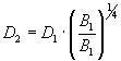 Для рассчёта диамтра многолопастного винта умножаем диаметр двухлопастного на корень четвёртой степени из соотношения количества лопастей двухлопастного к количеству лопастей многолопастного.