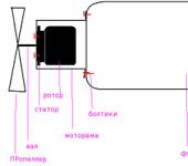 Колокольчк - мотор, который крепится за статор, стоит ротором вперед, и из ротора торчит вал.