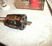 Второй мотор мотал проводом 0,6 с перекрытием обмоток по 120 градусов, влезло по 19 витков. Получилось более компактно, залез в родной корпус. Сопротивление оказалось тоже 30мОм, а Кв еще больше, подошел только винт 4,1х4,1, на двух банках 32А, на трех - 62А. Тоже работает на гонке.