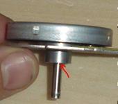 Стрелкой показано где снять фиксатор, и вытаскиваешь стакан ротора с валом а дальше как по маслу откручиваешь винтики перематываешь статор, я мотал 06 проводом 15 витков на зуб, магниты от головок CD клеил 12 штук, тяга на двух литиях около 500-600 грам в зависимости от винта