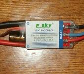 попался по случаю вот такой зверь E-SKY EK1-0350 9.2-14.8v/25A. может кому нибудь попадался такой зверь? Не могу запрограмировать. пробовал по инструкциям от другого, но он выдает серию тонов типа …-…-…-… и потом молчит пока ручку газа не сдвинеш на минимум, тогда пищит 3 раза и все, как при подключении. У него тормоз стоит который мне не нужен и напряжение отсечки большое. Если кто встречал такой - скиньте инструкцию пожалуйста или ссылку, у меня найти по марке неполучилось. 😦