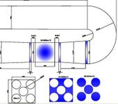 По-моему, канал нежелательно разворачивать сразу на 180 градусов. На внутренней поверхности поворота возникнет “пузырь”, который наделает потом много неприятностей по каналу. Гораздо легче повернуть на 90 градусов, но обязательно с помощью лопаток. Так как лопатки будут иметь профиль значительной кривизны, их надо считать. Канал в сечении лучше сделать квадратный или прямоугольный. Там проще будет поставить одинаковые поворотные лопатки и профили канала между лопатками будут одинаковые. Спрямляющая решётка не может быть из круглых трубок. Причина очень проста: если круглые трубки собрать в пучок, то между ними образуются каналы, как 4-х угольные звёздочки. Для потока такой канал крайне неприятен из-за застойных зон в углах. Гораздо проще, если каналы квадратные или, ещё лучше-8-ми угольные. Восмиугольники без проблем заполнят любое сечение. Решётка должна быть некоторой толщины, но не в виде сетки. Протяжённая решётка устранит боковые пульсации потока и спрямит его при входе в конфузор.