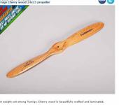 Наши ребята накупили подобных винтов, расслаиваются и деформируются в ступице. У вишни структура более плотная. Завтра попробую поджечь, куски остались, чтобы определить материал. У сосны (китайской ели) и у вишни специфические запахи при горении.