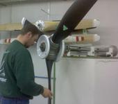 Процесс балансировки деревянного 3-х лопастного винта (черное покрытие - это стекло 0,3 мм два слоя с горячей формовкой в автоклаве + шпаклевка + краска)