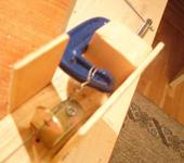 3.просверливаем в бруске №2отверстие 5мм в глубину по диаметру зажимного винта в струбцине,что бы струбцина не соскальзывала.