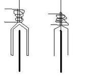 Слева из одного куска проволоки, справа из двух (вилка отдельно, ось отдельно). В месте соединения плотно обматывается ниткой и проклеивается эпоксидкой.