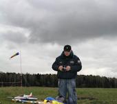 Привет народу! Сегодня на работу надо было после обеда, так я с утра рванул на поле порегулироваться. Три раза подлетнул, но ветер в середине дня был дай бог. Вдоль полосы но метров 9 точно. Так что удовольствия мало. Может в субботу будет по лучше.
