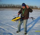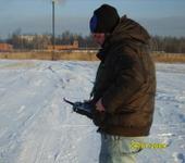 Полетал народ нормально.Вертолёты слегка падали,от мороза что-то там разъединялось,у когото сервы на крыльях оказались-одна раскручена,а другая еле-еле на 2х саморезах держалась(Санёёёёк),у кого-то, как обычно, крепление двигателя лопнуло после жёсткого приземления(Я 😃 ).А теперь немного фото: