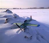 Ну и зазвонил мой трындызвон… А Карыч был низенько, возле леса… Нудная пищалка сократила поиски до одной минуты:) Икар стоял на земле в “нормальном” положении. Верхняя часть носа - покоцана. Сработала резинковая система отстрела крыльев:) Крылья уцелели. Просматривал записанное видео - определил, что самик потом кувыркнулся на земле О_о.