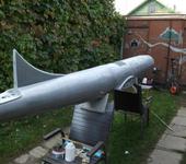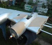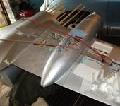 собрал и обклеил переднюю часть фюза , и наружние дефекты крыльев , крафт бумага на пва.