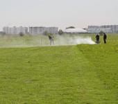 Сегодня был субботник. Володя скосил всю полосу и добавил ещё кусочек для аварийного выката больших самолетов. Потом полетали. Сергей внепланово заглох на высоте и попутно испытал авторотацию. Всё удачно. Несмотря на вес вертолёта, приземлился мягко. Из повреждений только лыжи и одна тяга лопасти. Пенопластовые мелколёты (включая меня) в воздух подняться не решились, было ветренно. 😃