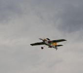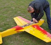 Сегодня была предпринята попытка облета Фокера, но из-за корявости рук пилота и сильного ветра она провалилась.После короткой пробежки и отрыве- завалило на бок, корявые ручки перевалили его на другой бок,-цепанул крылом земли, и пошел кувыркаться. В результате капут ступице колеса и замяты законцовки на трех крыльях.Неприятно но не смертельно. Уже лечится,следующая попытка вечером на неделе.Несколько фото,ДО и в реанимации.
