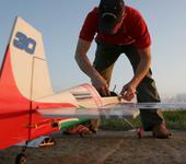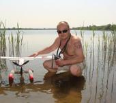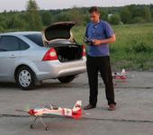 Центр тяжести поправил аккумом в 2600 mAh. (правда, все равно маловато!). Но самолет полетел. Больше с пилотажем рисковать не стал, но ни выход из пике, ни жесткая посадка в траву, ни прилет в руки совершенно не отражались на заднем оперении. Чуть расходились крылья в стороны при ну очень жестких насилиях над самолетом, но хвост стоял как вкопанный. Есть еще идея прихватить его точечно DUAL LOCK, Когда с Ебая придет, но это уже чисто русский перестрах!