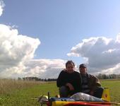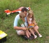После Сережиного отъезда у меня случился позорный казус. Вчера вечером до 3-х ночи готовил самолет, поменял машинку на руле направления, исправил мелкие сопли. Сегодня завел мотор, модель стоит слева от машины, даю руль влево, немного газа и модель поворачивает ВПРАВО и вьезжает в бампер машины:(. Приплыли… выставил расходы а РЕВЕРС НЕ ПРОВЕРИЛ!!! Обошлось малой кровью - сломанный винт и сантиметровая коцка на бампере… Ребята, после перестановки чего-либо три раза всё проверяйте! Винт 18*8 последний, поставил запасной 18*10, с ним скорость больше, но вертикали похуже… В итоге всё-таки сделал три полета, но уезжал с неприятным осадком😈.