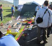 Планер в воздухе развалился по непонятным причинам. У Яка на посадке заглох двигатель. Конфетный я постарался - зарулился. Здесь еще нет сломанного вертолета 550 класса. Чудом упал метрах в 4-ех от нас. Я в крайнем полете чуть не разложил свою Ультру.