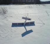 Решили пробовать «бутылочник». Совместными усилиями самолет был все-таки запущен, но в процессе был выявлен ряд конструктивных недочетов, приводивших к сваливанию самолета влево. Сергею, как более опытному пилоту, удалось совершить вполне приличный полет и безаварийную посадку, ну а я, немного полетав, выполнил единственную классическую фигуру высшего пилотажа под названием «Морковь». Так как снега на льду всего 10-15 см, сломался винт и место установки кабанчика на элероне. Фюзеляж слегка прогнулся, но при легком надавливании пальцем приобрел свои нормальные формы.