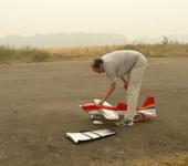 А вот тренер (который Алексей ремонтировал, и Константин то же) меня порадовал, благо в крен гиро воткнул. Т.к. без гиро после ремонта не хотел ровно летать, и тут вроде посадочка ничего получилась.
