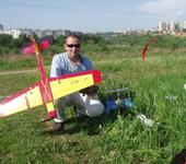 Сегодня со Стрижом выбрались в поле кузнечихинское. Облетали ЛМ - 17. Полоет был короткий. Моя ошибка в том, что сразу убрал газ. Но почему он тут же спикировал, непонятно. Модель жива, не считая оторванной моторамы.