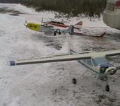 Открыл зимний “лыжный” сезон. Опять из-за недостатка конструкции в полёте одну лыжу разворачивало на 90 градусов. В результате 2 аварийные посадки в поле. После второй вырвало шасси.