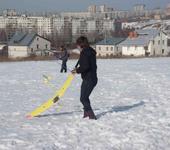 Мы ещё с ребёнком игрались: я пролетал низко на Естартере, а он пытался в него снегом попасть.