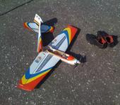 Не понятно почему, но в середине полета потеряли винт:), пришлось на вынужденную! Но все обошлось: мелкий ремонт, пара дырок от саломы (сажали в траву).