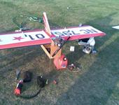 Цесна верхнеплан из потолочки+пенопласт, электроника от сломанной Ламы. В кузнечихе в зале я показывал после соревнований. Вот с тех пор никак не запущу 😦