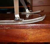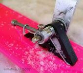 Сегодня закончил установку лыж на Ла-Рейсер. Если кому интересно вот такая инфа. Кое что подсмотрел в инете кое что сам придумал. Вес лыж с креплением и гайками 99г. Само полотно из алюминия толщиной 0.8-0.9мм,если сравнить с колесами увеличенными, (диаметром 100мм ) то они с гайками весят 87г. Вообщем приемлемый вес. Крепление как на штатных лыжах(фото1), которые есть на картинках в магазинах инета , но нет в реальной продаже у нас. Остановлюсь на лыжах, их лучше делать не прямыми с загнутым концом( фото2), а немного под углом к плоскости горизонта примерно 5-10 градусов(подбирается опытным путем), это исключает утыкание при посадке или попадание в неровность при разбеге. Само крепление позволяет регулировать угол наклона лыж и немного амортизирует при движении(фото;). Я использовал штатные стопоры от колес и гайки. Вот пружин так и не нашел желаемой жесткости, поставил , что было. Вроде работает.