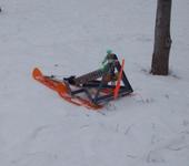 А я сегодня вот такую хрень испытывал. Гоняет, как чумовая! Даже одна лыжа отлетела. Виражи со свистом. Надо колею поширше сделать. Будет общий сбор - принесу, покажу