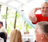 Короче, решили поехать к Виталику, провести культурно -физкультурное мероприятие, плавали в бассейне, ели-пили и играли в футбол-баскетбол.