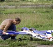 Привет всем! Доделывать, достраивать, заканчивать ремонт имеющихся еропланов патологически лень, ну, …не стоит 😁 . Так что поехал вчера и купил себе тренерок с нижним крылом . Как раз по мне, и так то ни хрена не умел, да ещё и забыл за лето 😁 . Сегодня поехал облётывать. Не сразу, не без приключений, но всеж нормально полетал к вечеру. Я действительно забыл как должны летать нормальные самолёты. “Кащея” над дорогой развернёш, газ сбросиш, он на середину травяной полосы и плюхается. А этого, черте откуда заводиш, газ на холостых - а он ЛЕТИТ,ЛЕТИТ, и скорость не сбрасывает 😃 . Фотик не доставал, Виктор обещал осветить. Народу достаточно. КОМАРЫ - ЗВЕРИ 😈 . Виктор, Были ребята с таким же ЯКом как у тебя. Все сказали - летит так же как у тебя - НИКАК.