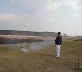 Всем привет!!! Каюсь мужики 😇 . Полетал сегодня отлично, погода супер, помех нет, ветра тоже. Что ещё для щастья надо 😃 . Ан нет, хочется что то хорошее для всех сделать. Решил, что самое лучшее, что я могу сделать на своем тракторе (ТЛК 100) - это утромбовать полосу. Так сказать, пока земля мягкая. Ну и как бы утромбовал, НО. Там в одном месте, с западной стороны полосы, лужица есть и маленькое болотце 😕 . Так вот - в неё я и вляпался. И вляпался так, что полный пепелац 😦 . Долго выкапывался оттуда и если бы не Игорь Литвинов (огромное спасибо) пришлось бы бежать куда-нибудь за трактором или куковать там пока кто-нибудь не выдернул. Так что знайте - яма на полосе сделана мной 😊 . Обешаюсь в воскресение, если будет нормальная погода, или в ближайшее время её заделать. Не корите мужики, хотел как лучше, а получилось, как всегда 😦 . Вот кстати та самая лужа.