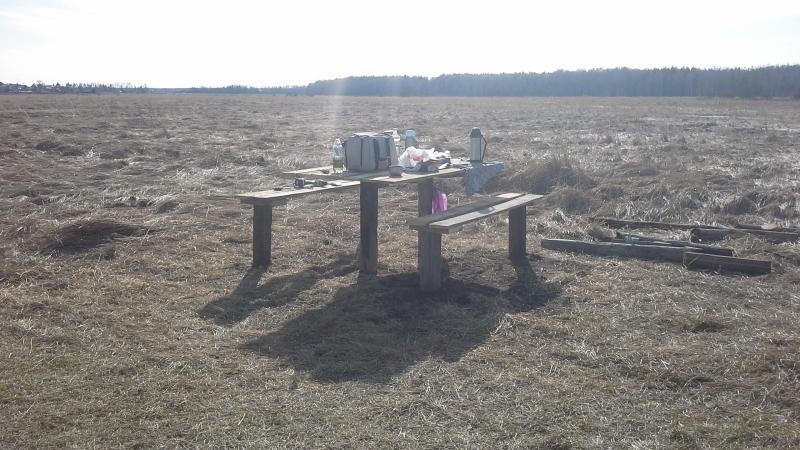 Мы уже на поле сделали лавку.Занимаемся уборкой.