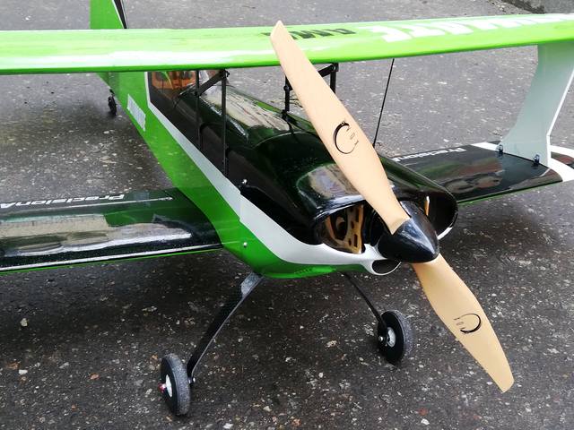 Облетал с утра пораньше “птенца”. После взлета пару щелчков от себя (в профильной ветке все отмечают эту его особенность) и всё, идет как по рельсам. Весь полет в треть газа, на вертикали вверх чуть более половины. Прямой полет и инверт одинаковые, срывной разворот на вертикали без проблем даже на малых расходах РН. Штопора прямой и обратный в норме. Поп-топ выполняет четко. За ручкой идет как влитой. Из незначительных недостатков, трудность снятия и установки акка и фонаря (мешает бипланная коробка).
