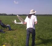 Полетали. Все было классно. Александр и Сергей прекрассные люди, оказали моей гексе первую помощь по прибытии на поле. Начались полетушки. Все шло как по рельсам, но при испытании возврата домой, гекса полетела на солнце. Потеря управления, неконтролируемый улет ее от меня, превращение в точку и где-то там падение. Я в шоке бегу по высокой траве в направлении приземления. На пути натыкаюсь на девушку загарающую топлез! Она вообще офигела. Думала, что на середине поля ее никто не найдет)))). Но гекса была важнее! Искал искал, ноги все в крапиве и калючках. Отчаялся уже и тут на помощь пришли настоящие товарищи Александр и Сергей. Спасибо вам за все, особенно Александру! Нашли гексу, стояла набоку со сломаными ногами))). Даже пропы все на месте, удивительно. Задумался над преобретением самолета/ планера. Вот фотки аппаратов моих спасителей, свой аппарат так и не сфоткал, у ребят надо просить.