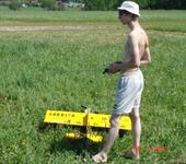 Для выхода из которой высоты не хватило и самолет буквально размазало по ВПП. Как ни странно крыло и задня часть фюза с оперением остались целы. А вот переднюю часть вместе с аппаратурой баком и мотором раскидало на мелкие кусочки в радиусе 2-3 метров. Как показал анализ ситуации был отказ регулятора борта с последующей просадкой аккумулятора. Поглядев на такую “морковку” я решил что и мне на сегодня с полетами нужно завязывать. Что в последствии себя полностью оправдало. При обслуживании самолета перед погрузкой в машину, выяснилось, что начал откручиваться глушак и крепление одного из подкосов потерялось в полете. Так что беда не ходит одна…