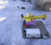 Но нас уже было не остановить. Чтобы как –то разрядить обстановку я еще разок запустил Бивер на полудохлом аккумуляторе. Повисев на месте против ветра около минуты на высоте 2х метров и грустно шлепнувшись на пузо, обессиленный Бивер был отправлен отдыхать в багажник. Тем временем, Сергей и Александр, взявшие таймаут, подключили к стартеру автомобильный аккумулятор (вместе с автомобилем) использовав удлинительные провода. И дело закипело по-новому…После 30 минут безуспешных попыток Сергей предложил Александру все-таки вынуть из глушителя тряпочную затычку и попробовать завести двигатель в таком виде. Как ни странно мотор завелся от руки, просто одним пальцем. Ржали долго!… Путь в небо был свободен!