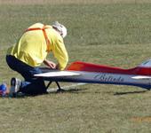 Если ты про желтый планер - то это чешский “Lunak” . Размах 4 метра, вес около 8 кг. Его при ветре около 5-7 м/с даже бросать не надо на южном склоне - просто подошел к перегибу и отпустил -