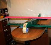 Для первой «самоделки» вполне приемлемо и вес нормальный. Движок насколько я понимаю 0,25 ТТ, соответственно до полутора килограмм взлетного веса будет нормально. Но маленькую ложечку дегтя добавлю: на мой взгляд, следовало бы «зашить» миллиметровой бальзой крылья по всей длине от передней кромки до лонжерона, для того чтобы пленка не провисала между нервюрами. Это нужно не для эстетства, а для того чтобы «выровнить» поверхность обтекания, что в свою очередь добавит стабильности полета. Но в конце-концов уже поздняк метаться – ждем’с на бетонке, там и посмотрим…