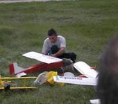 Чёта как, то нервно сегодня всё прошло… Я опоздал - работа. Когда приехал на аэродром, увидел, что народу тьма-тьмущая! Собрал тренерка, взлетел… Как то всё не так показалось, задрожали пальцы, полетал, посадил - скозлил маленько. Следующие 3 вылета тоже были нервные и дёрганные. На предпоследнем, случился глюк, или термик, или не знай что: после прохода над полосой, на высоте 4-5 метров, на полном газу, самоль повинуясь неведомым силам… ныряет вниз с невиданной для него прыткостью!!! Я среагировал - уже не мозгом, а скорее рефлексом, дёрнул ручку на себя до упора и уже услышал характерный хруст, так, как модель скрылась за кустами! Но, нет!!! Вывел таки из пике, вспотел, ноги “поватнели” сразу… Сел, скозлил, руки дрожат…