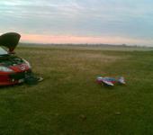 Послушался добрых синоптиков, ветер утром 3 м/сек., хорошо что поехал с планером, ему ветер ни почём. Но лишние взлёт-посадки делать не стал, слетал один полёт, можно было ещё летать, но замёрз, ветер был порывами наверное больше 10-ки.