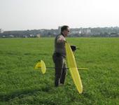 После того, как ты уехал народ привалил - соскучился по этому делу. В какой-то момент в воздухе было аж пять аппаратов, но недолго, секунды 3, не смог взлететь… 😃 Поднял Володькину маленькую Сушку первый раз - летает также, как и у него, криво.Надо чёто делать. Отлетали нормально, без крашей, поцокались малёк только. У Сержа лопнула передняя стойка шасси - заменил в поле. Вроде и всё… 😃