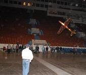 Теперь кратко о полетах. Судьи особо подчеркивали что все фигуры являются «силовыми», т.е. как нам любезно объяснили самолет должен лететь на большом угле атаки. Продвинутые питерские пилоты решали эту задачу очень просто- задней центровкой. С такой центровкой комнатный шок – флаер летает на малом газу задравши в небо нос на «вечном хариере», а бипланчик делает силовую бочку по кругу без использования руля поворота. То что лишь модели москвичей способны были совершать прямолинейный самолетный полет до и после выполнения «силовой» фигуры, судя по результатам никак не оценивалось. Вот таковы вкратце питерские особенности и понятия о комнатном 3д пилотаже, местная специфика так сказать. Шутя и не без уважения назовем это «Школой Задней Центровки» или «Академией Бритого Кактуса». Я думаю что такой стиль полетов и есть главная причина неофициальности данных соревнований, мне кажется, что если перейти к международным правилам и соревнованиям по комплексу FAI F3P, есть шанс придать этому турниру статус официального спортивного состязания. Могу в меру сил даже попытаться посодействовать.