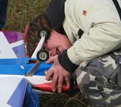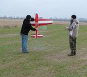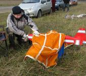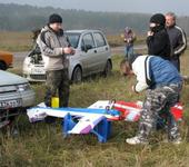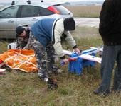 Сегодня в 13-15 заехал с инспекцией на поле 😃 . Там был один 😃 Иван с Грувиком. Экстремал, однако 😮 . Ветер холодный, мотор на модели у него в полёте разобрался. Но он не унывал,прятался в машину погреться через каждые 10 мин. Мотор поправил, и продолжил полёты 😃 .