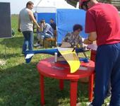 Чуть растолкали окриками толпу, - и… на взлет. После минуты кувыркания в воздухе, пилот зарулился: совершил недопустимую ошибку - увел самолет за спину, а за спиной - ярко светило солнце и загарающие на травке зрители. Против солнца модель было не разглядеть, как следствие - потеря контроля. Самолет плавно по спирали входил в землю, где находились зрители… Чудом никто из толпы не пострадал… Самолет - теперь это дрова.