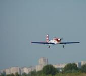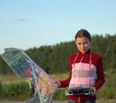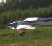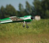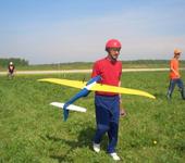 Машина тяжеловата, поночалу никак в небо не хотела лететь, постоянно пыталась кабрировать, несмотря на переднюю центровку и руль выоты опущеный немного вниз. После нескольких полетов, а облетывать машину доверили мне, удалось настроить аппарат. Стал летать как настоящий тренер с брошенными ручками, так что передатчик переходил из рук в руки 😃